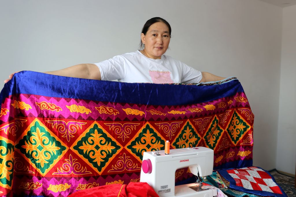 «Два-три месяца я шью такие изделия, как одеяла, подушки. больших заказов нет, так как у меня нет рекламы в соцсетях. Пока выполняю просьбы друзей и родственников, которые меня знают», — говорит Ботакоз Даухан.
